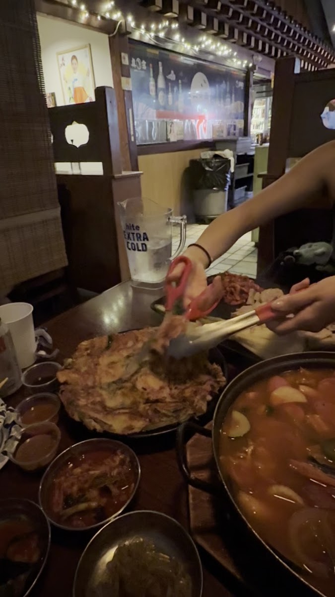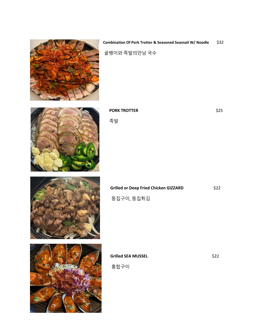 If you're in the mood for something different, don’t miss their Seafood Pancake (해물파전), a delightful combination of crispy batter and fresh seafood that tantalizes the palate. And for those seeking a bit of spice, the Spicy Seasnail Salad (골뱅이무침) adds a kick that will surely awaken your senses. Every dish is crafted with care, ensuring generous portions that make every bite memorable.